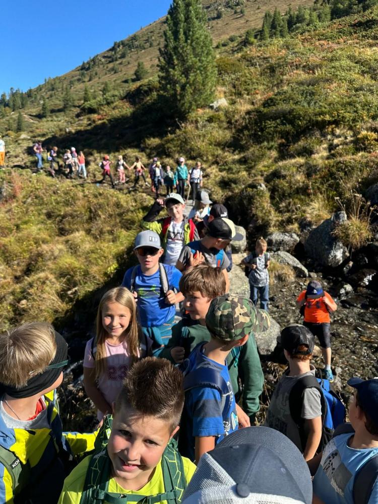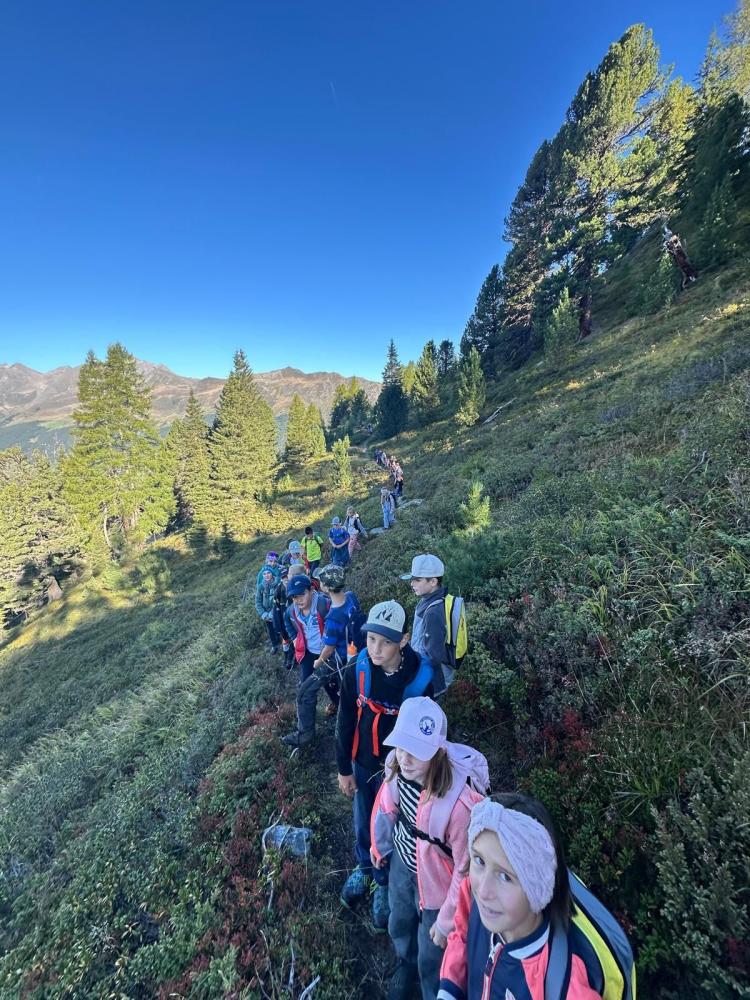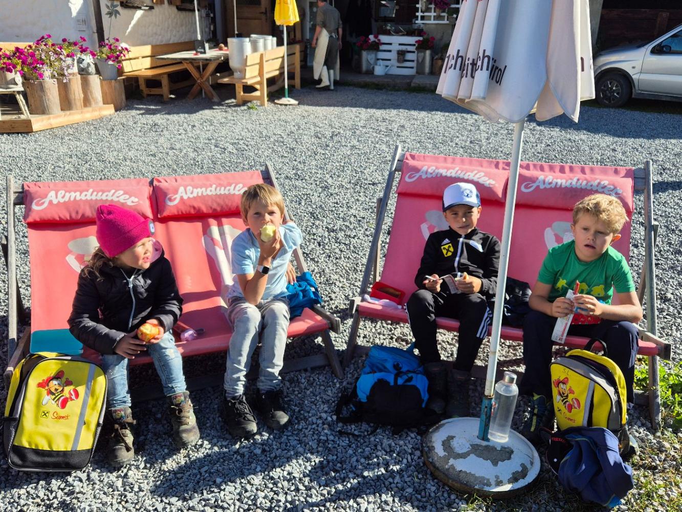 So oder so ähnlich lautete das Motto unseres ersten Wandertages. Bei strahlendem Sonnenschein und angenehm milden Temperaturen führte er uns hinauf in die Berge. Während die "Großen" sich die große Runde übers Kapfli zutrauten, statteten die "Kleinen" der Versingalpe einen Besuch ab. Auf jeden Fall darf so ein Tag zum Schulstart nicht ausgelassen werden.